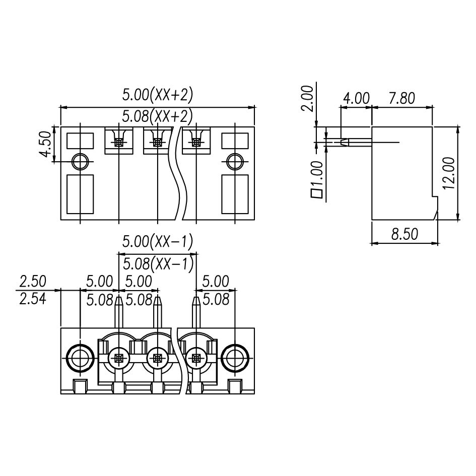 间距: 5.0 mm/5.08 mm