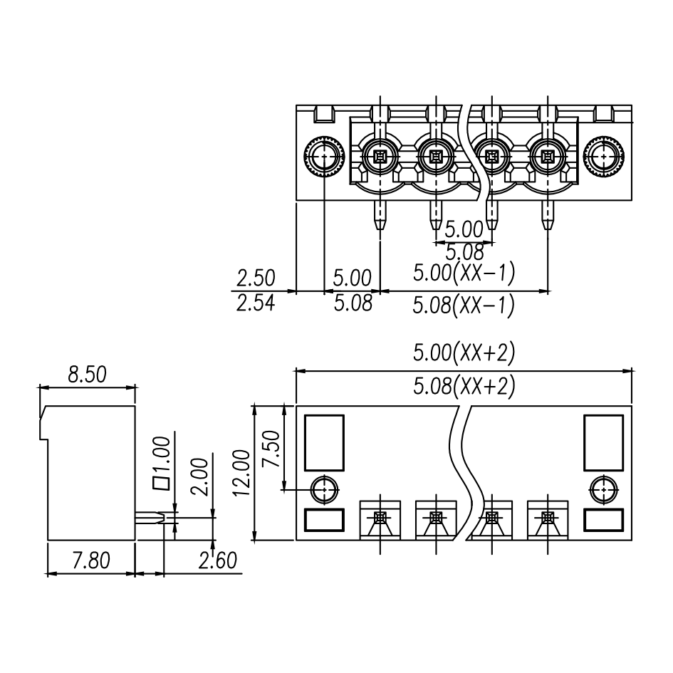 间距: 5.0 mm/5.08 mm