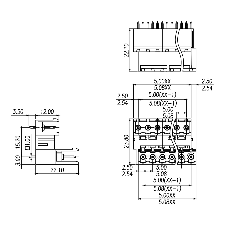 间距: 5.0 mm/5.08 mm