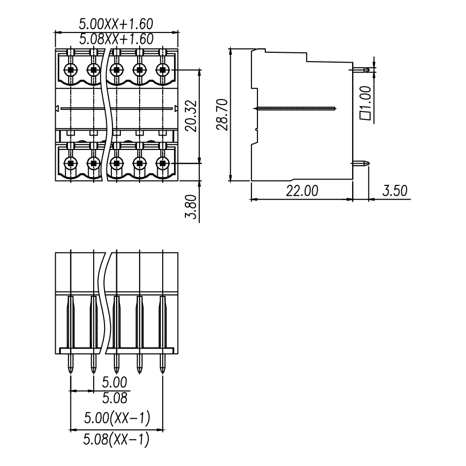 间距: 5.0 mm/5.08 mm