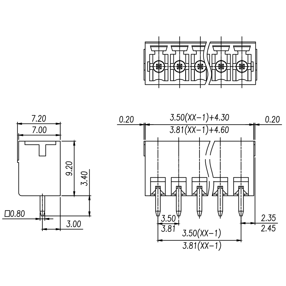 间距: 3.5 mm/3.81 mm